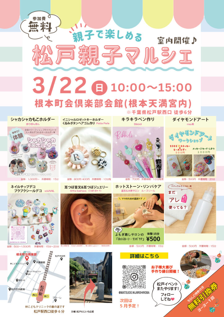 3/22(日)松戸親子マルシェ @松戸 根本町会倶楽部会館